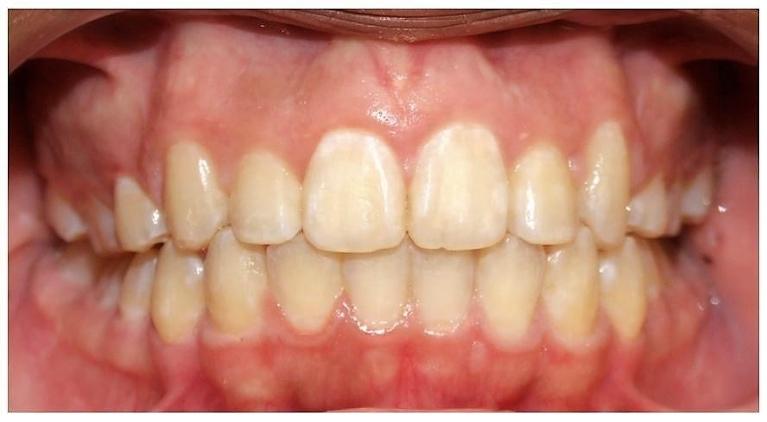 After: Comprehensive Treatment- Traditional Clear Braces, Fixed lower retainer, 24 moths.