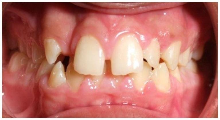 Upper front teeth protrusion is one of the most common dental problems we see in our practice. The source of the problems relate to parafunctional habits, such as thumb-sucking, nail-biting, pacifier-sucking, among others. In many cases, the pressure from the tongue while swallowing (Tongue Thrusting Habit) would also make the teeth protrude and create spaces between them, affecting the overall bite, its function and the smile. A good reason to correct them early in life is to avoid fractures, since protruding teeth are more prone to trauma during sports and outdoor activities.